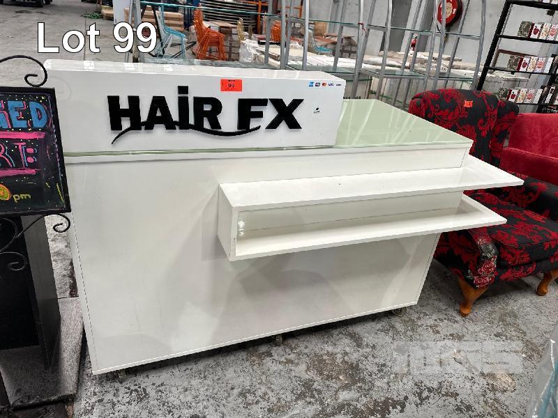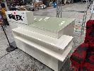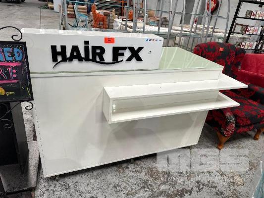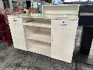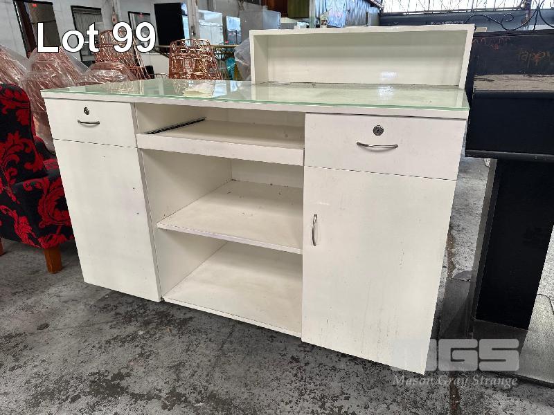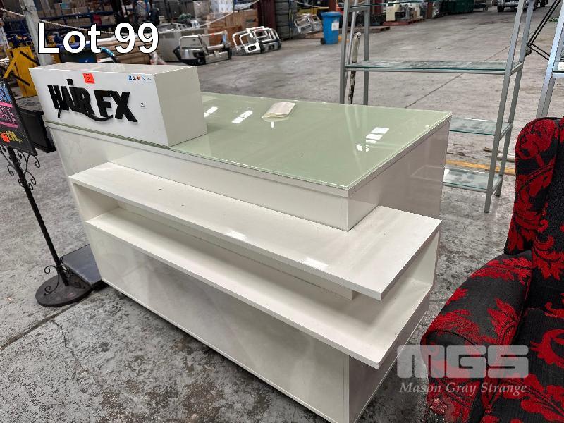 RECEPTION COUNTER, WHITE TIMBER LAMINATE, GLASS TOP 1400 x 650 x 900mm (H)