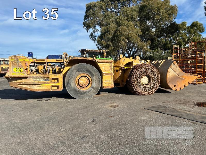 CATERPILLAR UNDERGROUND LOADER MOD: R2900G FITTED WITH AUTONOMOUS REMOTE CONTROL SYSTEM PIN: CATR2900PJLK00994 PLANT NO: UL207 CAT ACERT C15 TURBO DIESEL ENGINE HOURS: 51,204 SHOWING 4 SPEED TRANSMISSION CONTROL MASTER REMOTE CONTROL SYSTEM WITH, SERIES: 2200 WIRELESS CONTROL UNIT, TYPE: 11490 TRANSMITTER & 12002 RECEIVER MULTIPLE CAMERAS & LASER SENSORS. ROPS & FOPS PROTECTION MINE SPEC FIRE SUPPRESSION SYSTEM BATTERY ISOLATION SWITCHES, EMERGENCY STOP BUTTON MUD CHAINS FITTED TO FRONT WHEELS KEY #17