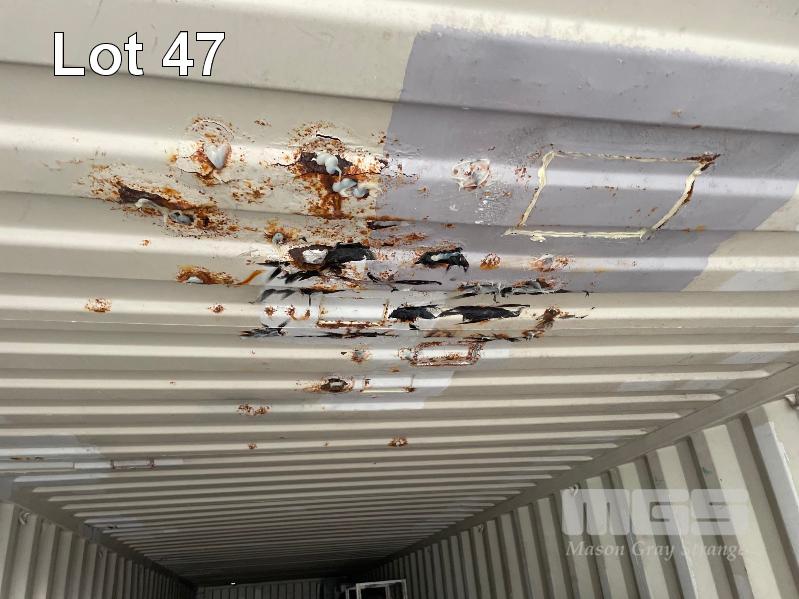 40ft SHIPPING CONTAINER, BURGANDY, DOORS SEAL DENTS, HOLES & RUST