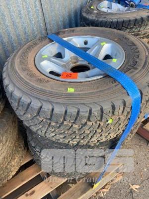 4 x TOYOTA 79 SERIES LANDCRUISER ALLOY RIMS, 5 STUD & TYRES, DUNLOP GRAND TREK ATI SIZE 265/70R16 115 R LT, WITH WHEEL NUTS