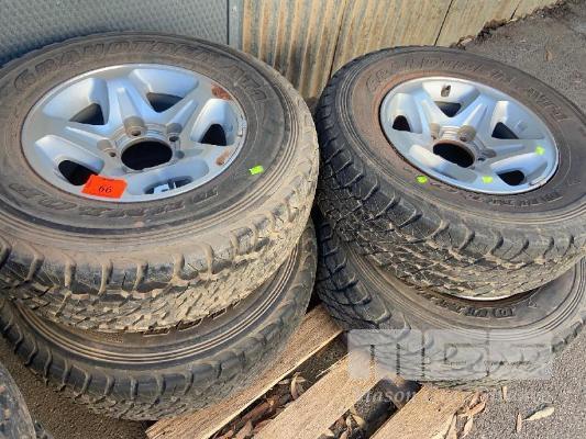 4 x TOYOTA 79 SERIES LANDCRUISER ALLOY RIMS, 5 STUD & TYRES, DUNLOP GRAND TREK ATI SIZE 265/70R16 115 R LT, WITH WHEEL NUTS
