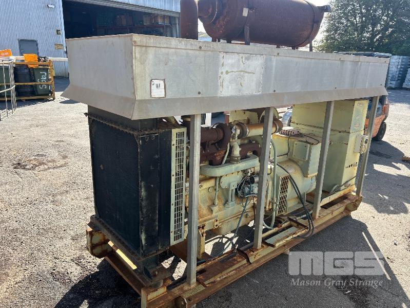 GENSET, DETROIT MOD: 6466-T-95 DOM: 1989 RATING: 95kw 415V, 127 AMP POWERED BY JOHN DEERE 6 CYLINDER TURBO DIESEL ENGINE MOD: 6466TF-00 HOURS: 19,157 SHOWING SKID MOUNTED EX MILITARY