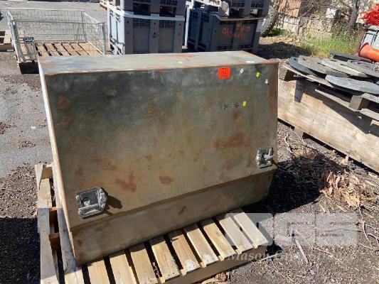 METAL STORAGE BOX, 1200 (L) x 500 (W) x 860mm (H) WITH SHELF & NEW LOCKS