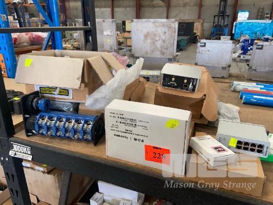 ASSORTED INDUSTRIAL ELECTRONICS INCLUDING ALLEN BRADLEY STRATIX, PLC CARDS, POWER SUPPLIES, PROSOFT CELLULAR GATEWAY, SWITCHES, ETC 1 x SHELF