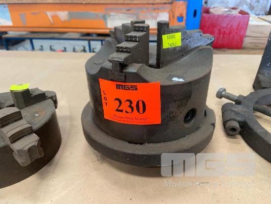 ASSORTED LATHE ACCESSORIES, 6" x 4 JAW CHUCK, 7" x 3 JAW CHUCK, 2 x 3 POINT STEADYS & 1 x 10" FACE PLATE