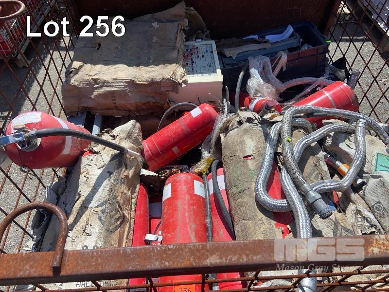 STILLAGE & CONTENTS INCLUDING 20 x FIRE EXTINGUISHERS, CONTROL PANEL & PIPE FLANGES