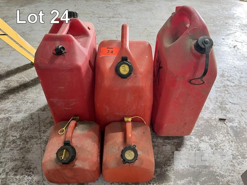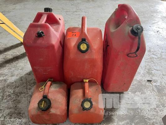 5 x RED PLASTIC FUEL CONTAINERS
