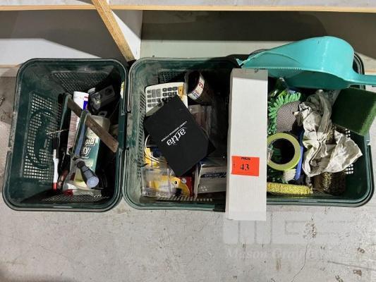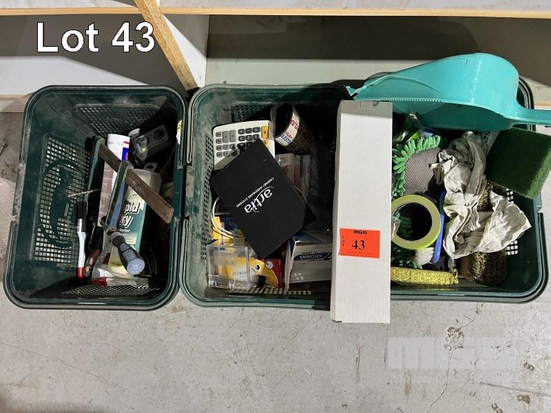 3 x PLASTIC BASKETS OF ASSORTED TOOLS & SUNDRIES