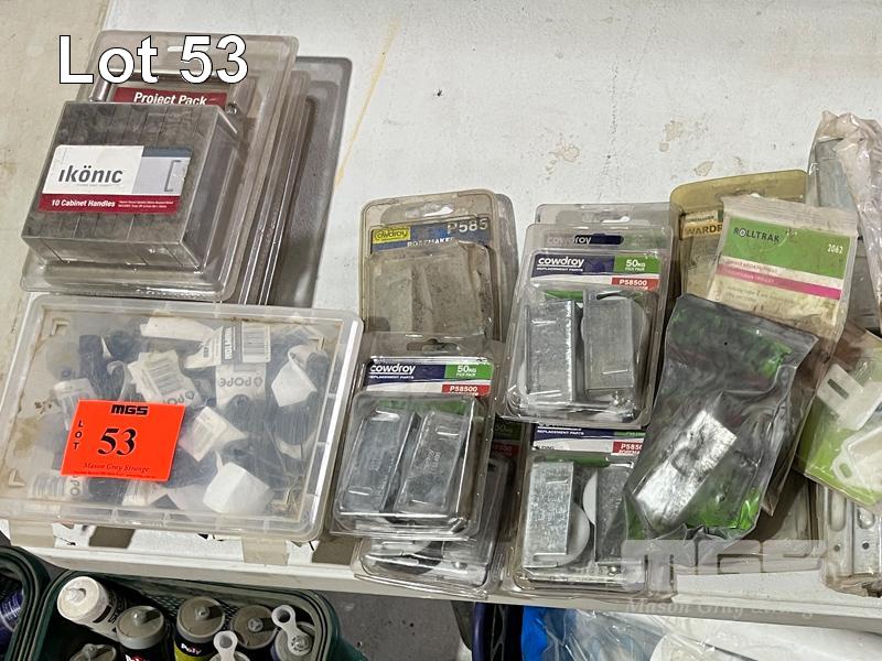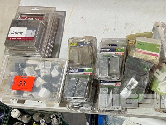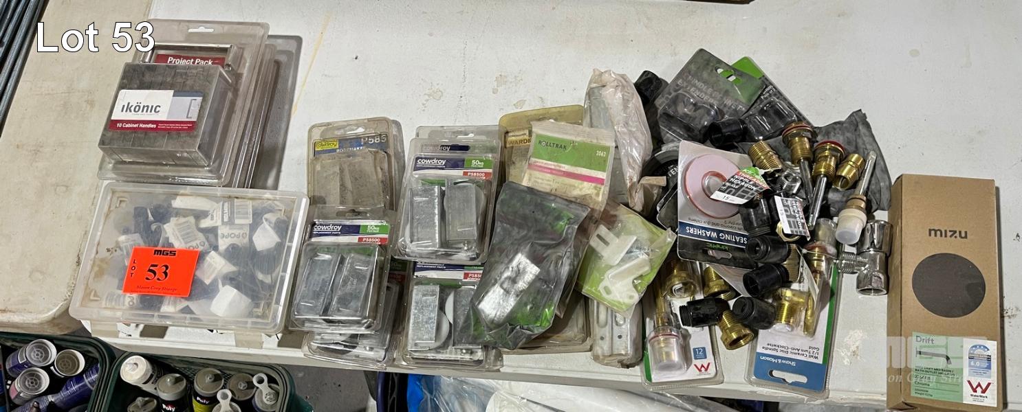 QUANTITY OF ASSORTED CABINET HANDLES, TAP FITTINGS, ETC