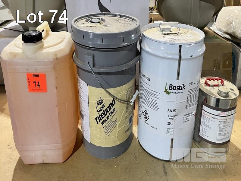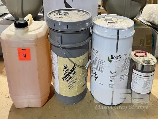 DRUMS OF DETERGENT, TITEBOND WOOD GLUE, BOSTIK ADHESIVE, BONDTECH ADHESIVE