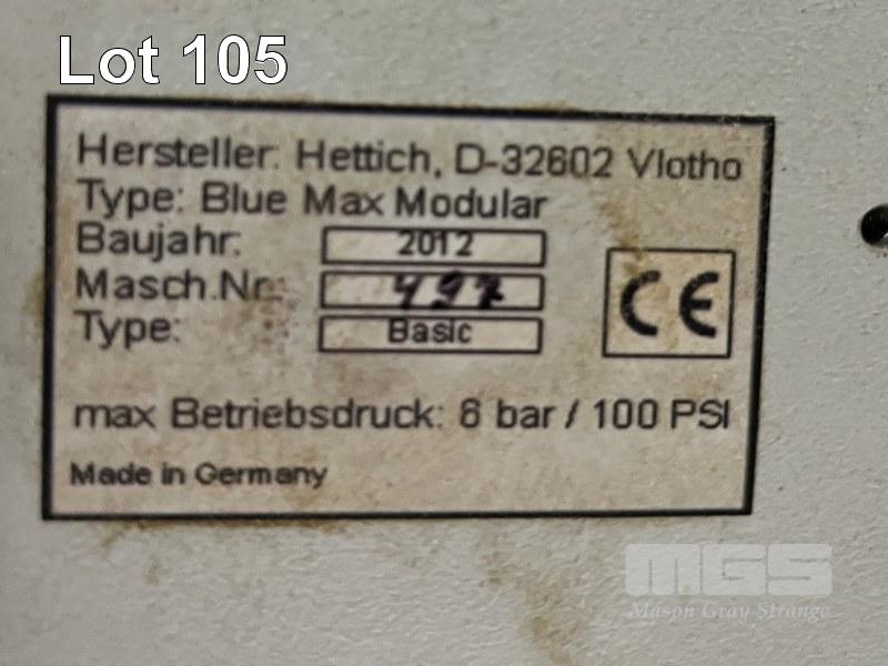 HETTICH MOTORISED HINGE DRILLING & INSERTION MACHINE MOD: TYPE BLUE MAX MODULAR BASIC S/NO: 497 (YEAR 2012) 415V, 3 PHASE