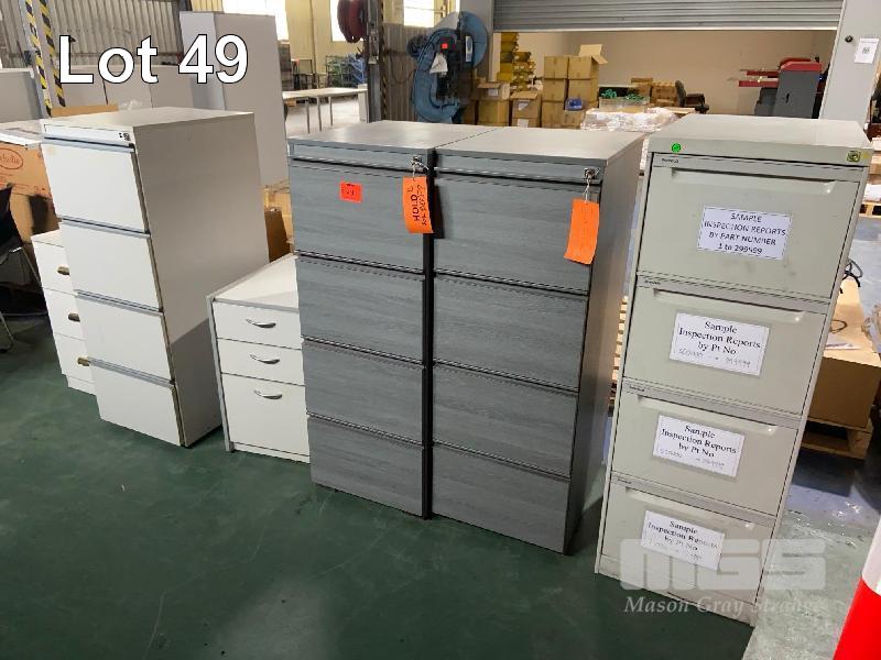 6 x FILING CABINETS TIMBER LAMINATE TABLE, 1100mm (D) 7 x STACKABLE CHAIRS