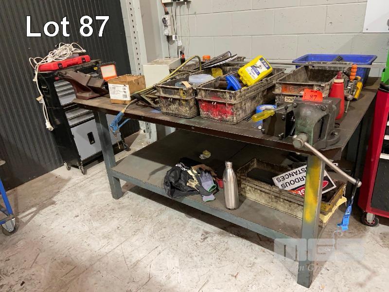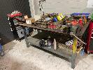 WELDERS BENCH, STEEL PLATE TOP 2 TIER, 1340 x 1840 x 900mm, 4mm THICK DAWN 125mm VICE & DAWN 100mm OFFSET VICE