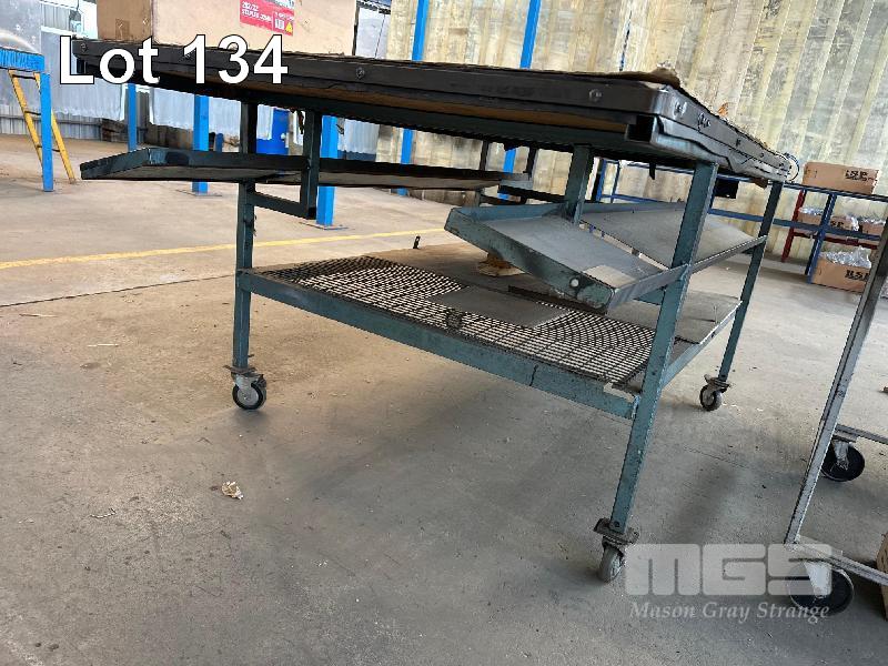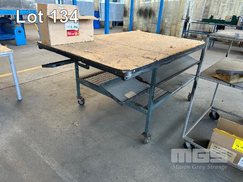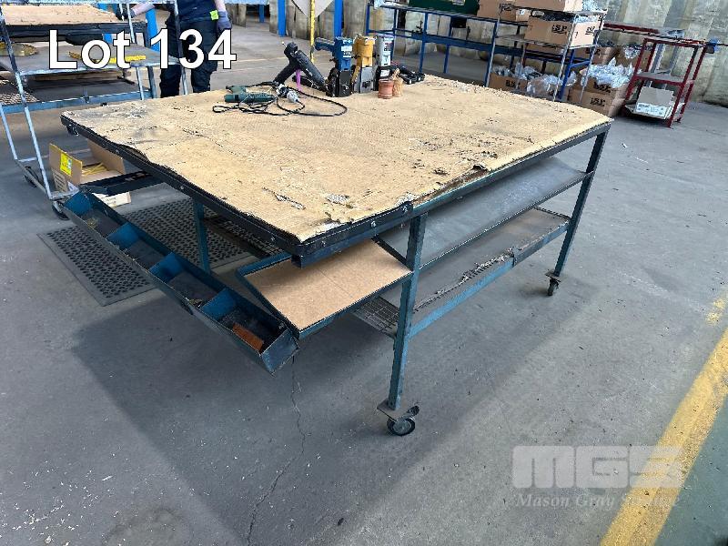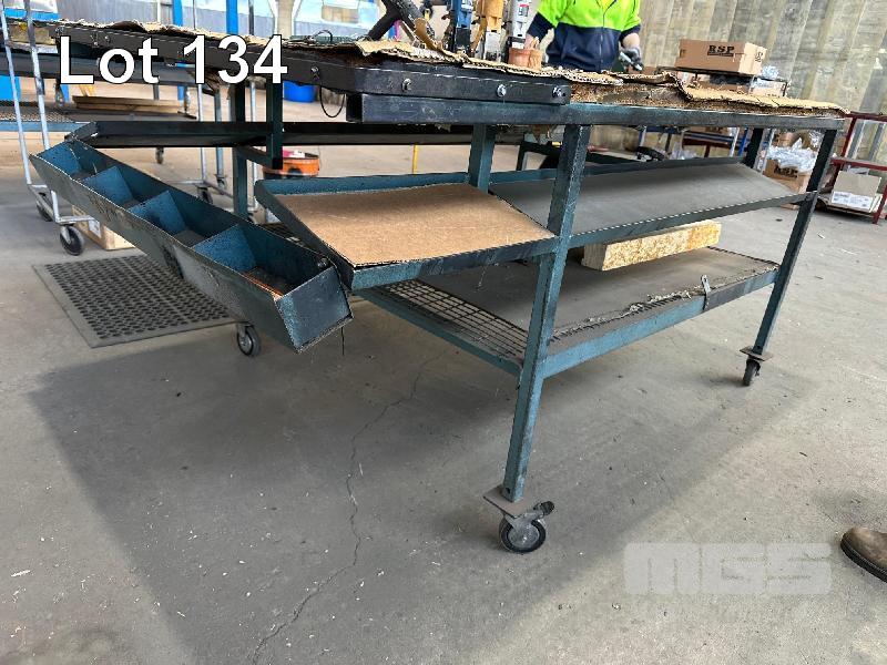 PAIR MOBILE WORK STATIONS, CASTOR WHEELS, 1800 x 1200mm