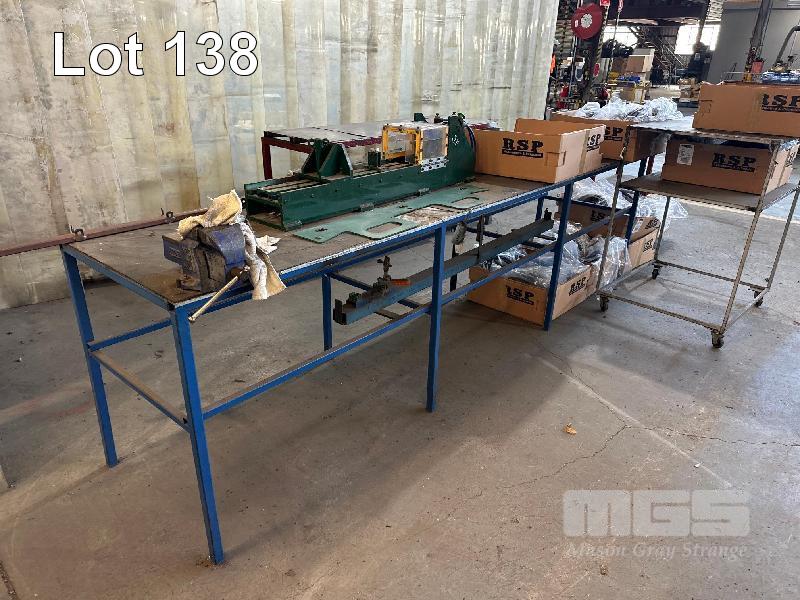 PNEUMATIC LEG ASSEMBLY WITH STEEL TUBE WORK BENCH, 3000 x 600mm + RECORD NO. 3 VICE