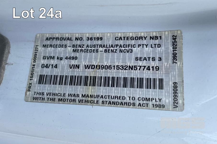 2014 MERCEDES BENZ SPRINTER 516 CDI REFRIGERATED VAN RWD REG: SB08JX VIN: WDB9061532N577419 ODO: 318,423 AUTO, DIESEL, WHITE, 2 DOORS, 3 SEAT, RWD ABS, AIR BAG, AIR CON, ATR POLAR FREEZ REFRIGERATION UNIT, REFRIGERANT TYPE: R404A, FURGO CAR BODY: 3450 x 2150mm, TIEMAN TAIL GATE LOADER, MOD: TT750A, CAP: 750kg, (NO PAPERS, WITH 2 KEY/S, WITH OWNER'S MANUAL, WITH SERVICE BOOKS)