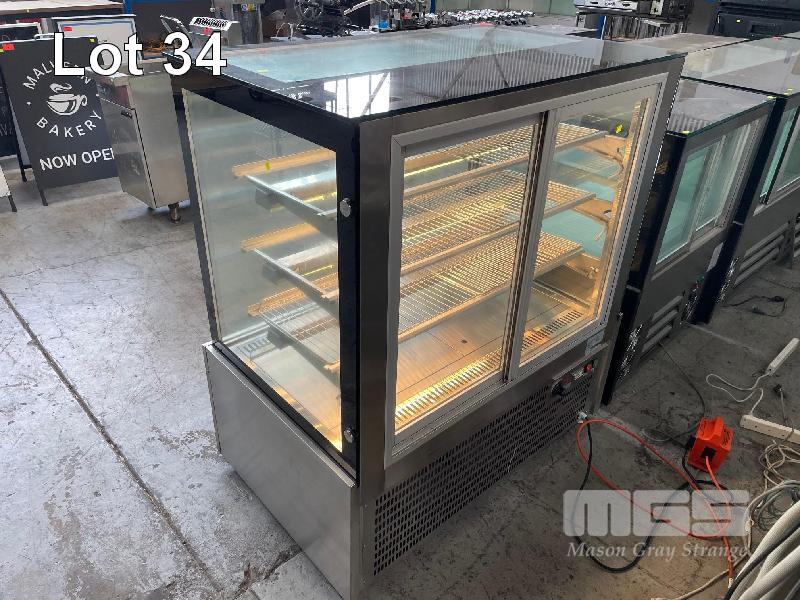HEATED GLASS DISPLAY CABINET, FED 1175 x 730 x 1350mm (H) 3 TIER, SLIDING DOORS, ILLUMINATED 240V, 10 AMP