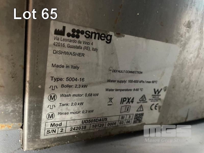 GLASSWASHER, SMEG MOD: UD505DAUS S/NO: 242038 240V, 10 AMP