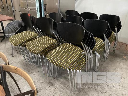 48 x DINING CHAIRS, CLOTH TOPS, CHROME BASE