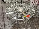 5 x OUTDOOR WIRE FRAME COFFEE TABLES, GLASS TOP, WHITE 3 @ 450mm (D) x 530mm (H) 2 @ 630mm (D) x 330mm (H)