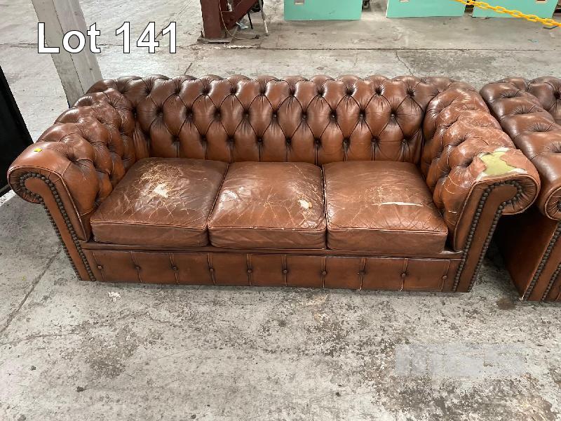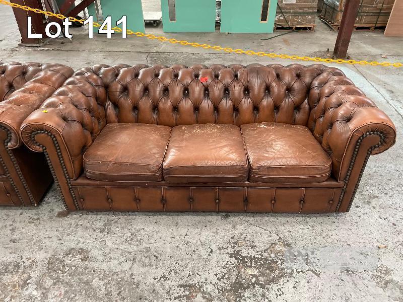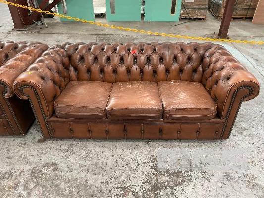 2 x LEATHER 3 SEAT LOUNGES, "MORAN VICTORIA" MULTIPLE TEARS, SUIT RESTORATION