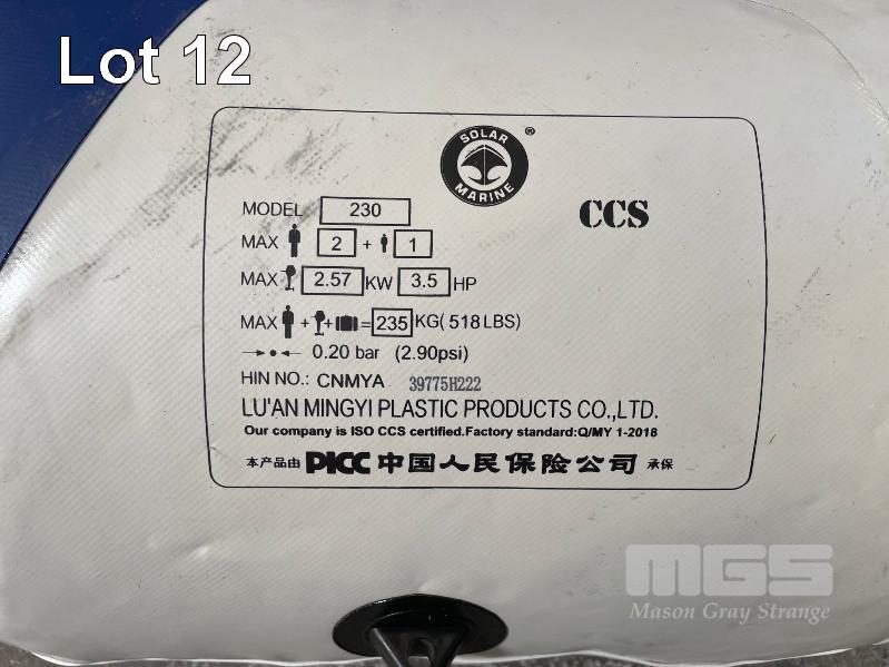 SOLAR MARINE DINGHY, 2.2m, WITH PADDLE & OUTBOARD ATTACHMENT (NO OUTBOARD) MOD: 230, MAX: 2 PEOPLE + 1 CHILD (235kg)