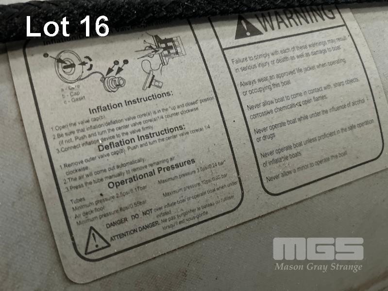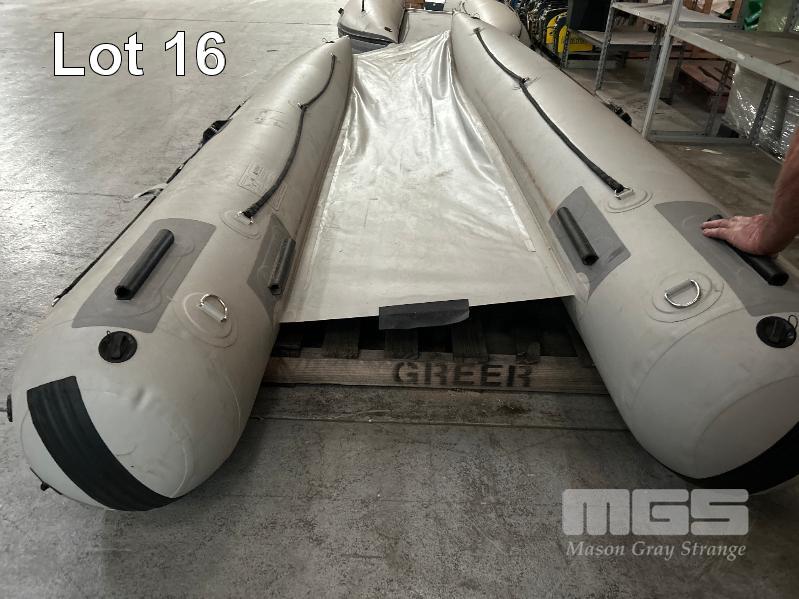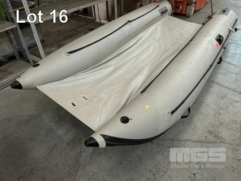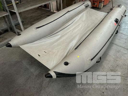 INFLATABLE BOAT, TAKACAT MOD: 370LXPVC LENGTH: 3.7m NOTE: HAS SLOW LEAK IN PONTOON, MISSING BACKBOARD, BRACE POLES & INFLATABLE BASE
