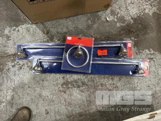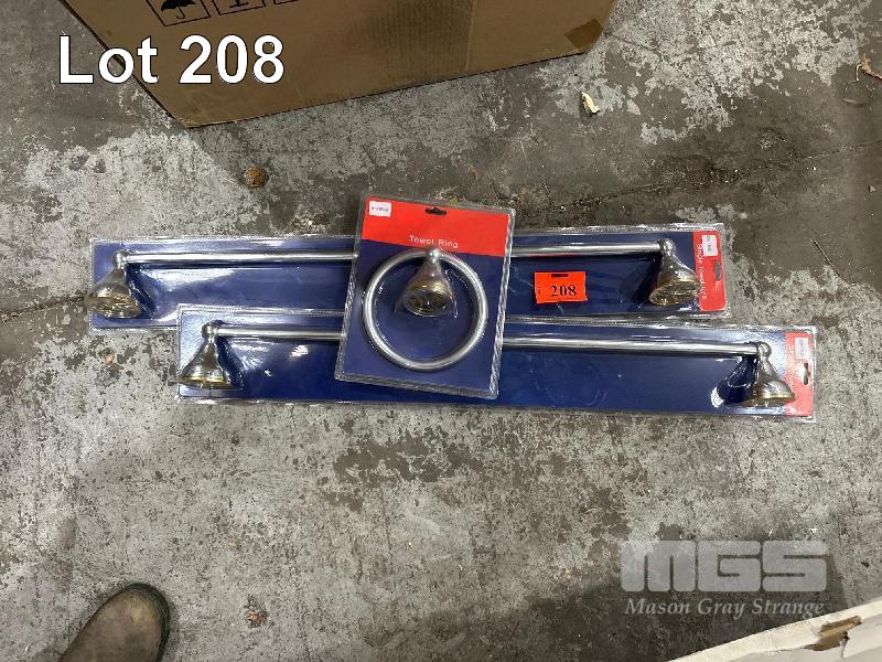 2 x STAINLESS STEEL SINGLE TOWEL RAILS & RING