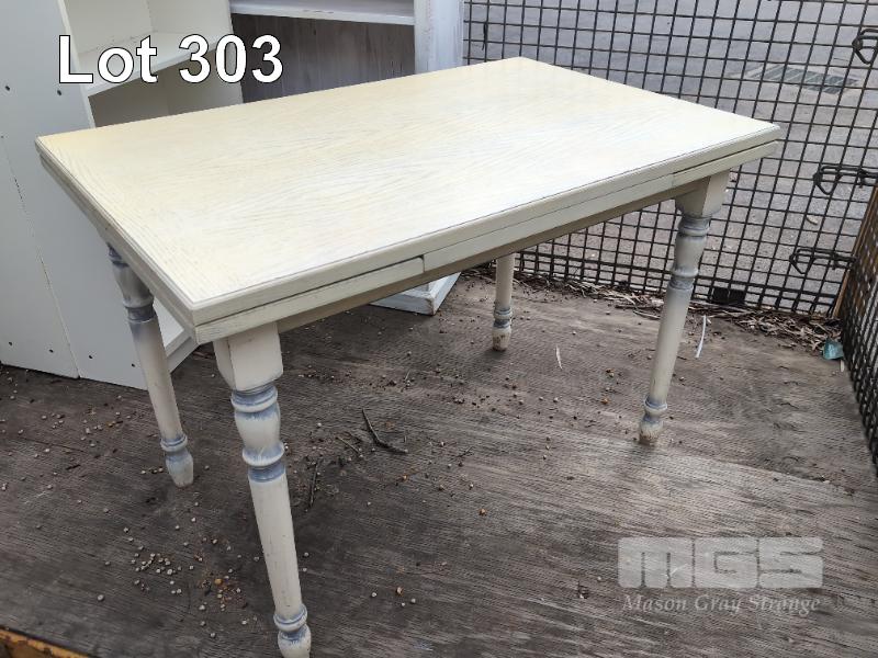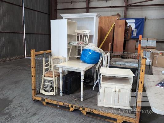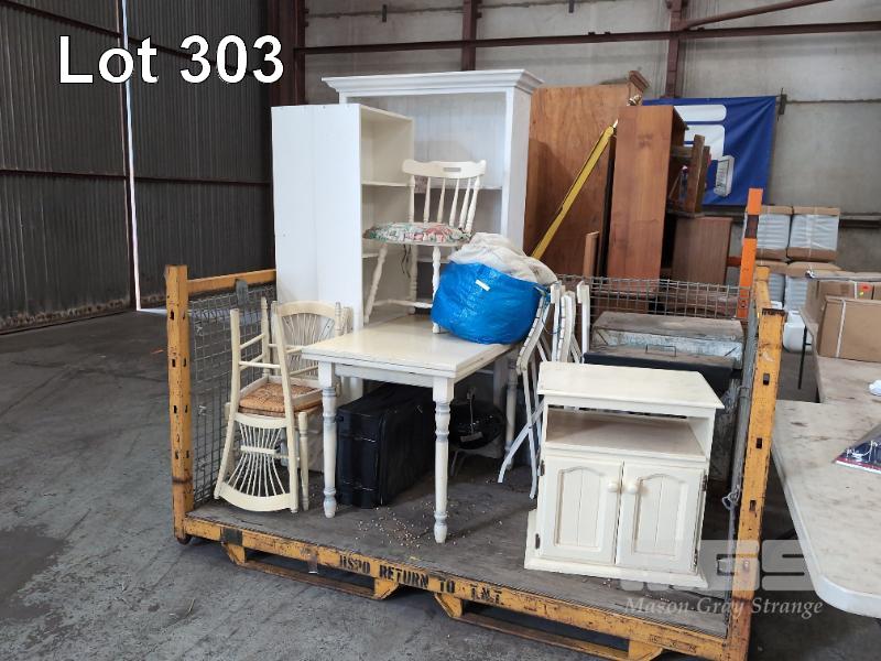 ASSORTED PAINTED WOODEN FURNITURE ETC (1 X STILLAGE NOT INCLUDED).