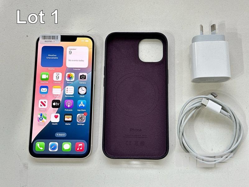 APPLE iPHONE 13, 128GB, STARLIGHT, MODEL MLPG3X/A, BATTERY HEALTH 100% WITH CASE, CHARGER & CABLE S/N:WVKJX5Y0JW