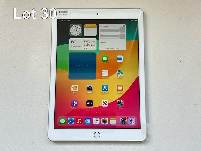 APPLE iPAD 6TH GEN, 32GB, Wi-Fi, SILVER, MODEL MR7G2X/A, A1893 (NO CABLE, NO CHARGER) S/N:DMPW68VLJF8K