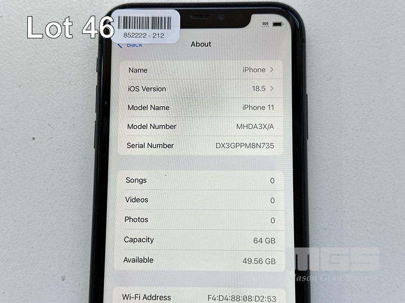 APPLE iPHONE 11, 64GB, MODEL MHDA3X/A, A2221, BLACK, BATTERY HEALTH 85% (NO CABLE, NO CHARGER) S/N:DX3GPPM8N735