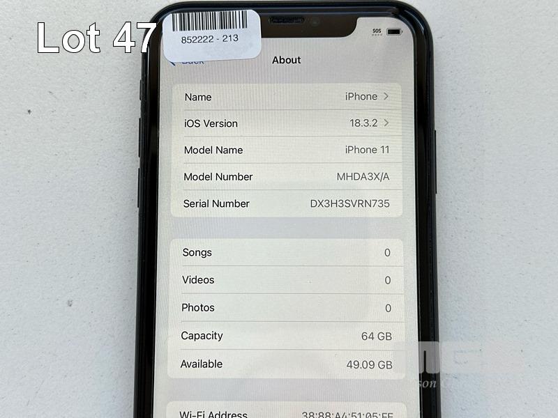 APPLE iPHONE 11, 64GB, MODEL MHDA3X/A, A2221, BLACK, BATTERY HEALTH 85% (NO CABLE, NO CHARGER) S/N:DX3H3SVRN735