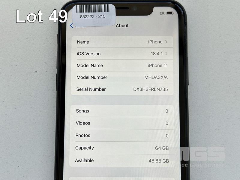 APPLE iPHONE 11, 64GB, MODEL MHDA3X/A, A2221, BLACK, BATTERY HEALTH 85% (NO CABLE, NO CHARGER) S/N:DX3H3FRLN735