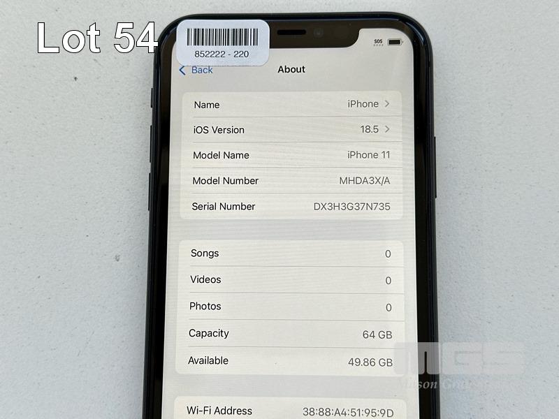 APPLE iPHONE 11, 64GB, MODEL MHDA3X/A, A2221, BLACK, BATTERY HEALTH 84% (NO CABLE, NO CHARGER) S/N:DX3H3G37N735