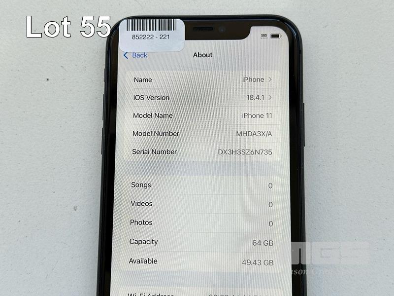 APPLE iPHONE 11, 64GB, MODEL MHDA3X/A, A2221, BLACK, BATTERY HEALTH 84% (NO CABLE, NO CHARGER) S/N:DX3H3SZ6N735