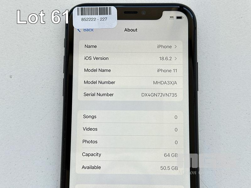 APPLE iPHONE 11, 64GB, MODEL MHDA3X/A, A2221, BLACK, BATTERY HEALTH 82% (NO CABLE, NO CHARGER) S/N:DX4GN7JVN735