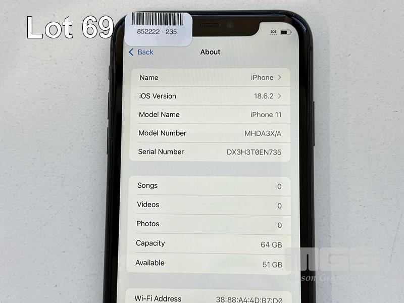 APPLE iPHONE 11, 64GB, MODEL MHDA3X/A, A2221, BLACK, BATTERY HEALTH 81% (NO CABLE, NO CHARGER) S/N:DX3H3T0EN735