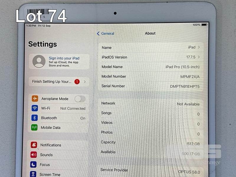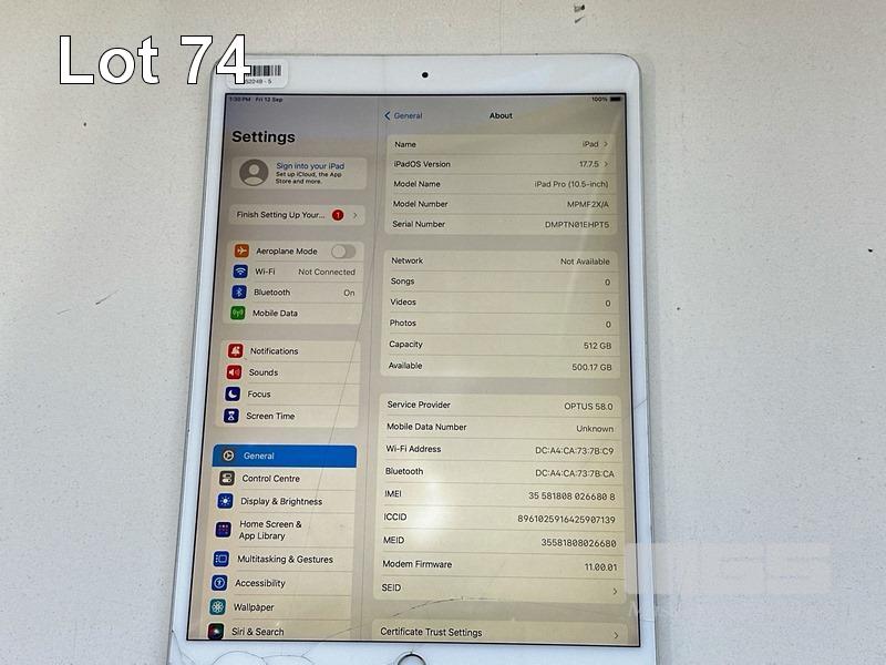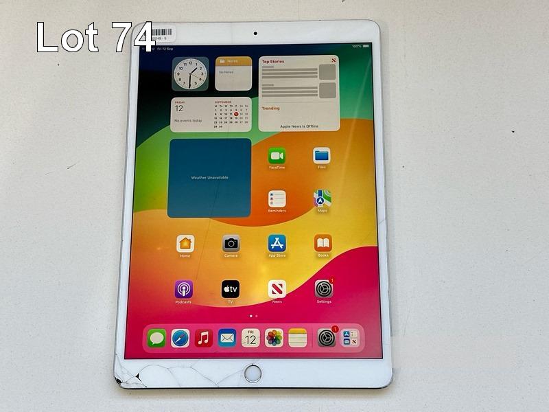 APPLE iPAD PRO, 10.5", 512GB, Wi-Fi, CELLULAR, SILVER, MPMF2X/A, MODEL A1709 (NO CABLE, NO CHARGER) (NOTE: SCREEN BLEMISHES, DAMAGED) S/N:DMPT01EHPT5