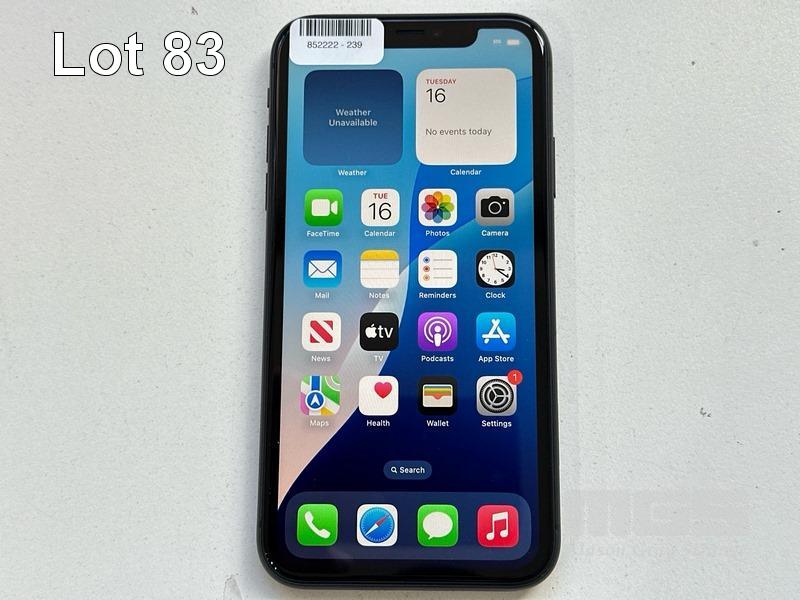 APPLE iPHONE 11, 64GB, MODEL MHDA3X/A, A2221, BLACK, BATTERY HEALTH 100% (NO CABLE, NO CHARGER) (NOTE: MINOR SCRATCHES ON SCREEN) S/N:DX3M13T6N735