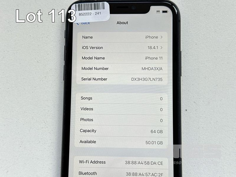 APPLE iPHONE 11, 64GB, MODEL MHDA3X/A, A2221, BLACK, BATTERY HEALTH 95% (NO CABLE, NO CHARGER) (NOTE: MINOR SCRATCHES ON SCREEN) S/N:DX3H3G7LN735