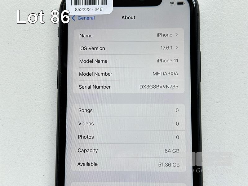 APPLE iPHONE 11, 64GB, MODEL MHDA3X/A, A2221, BLACK, BATTERY HEALTH 87% (NO CABLE, NO CHARGER) (NOTE: MINOR SCRATCHES ON SCREEN) S/N:DX3G8BV9N735