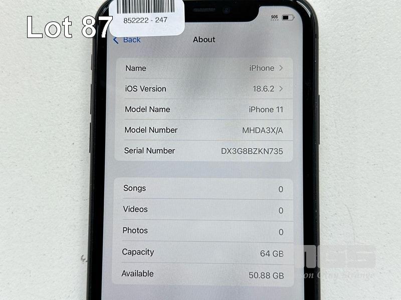 APPLE iPHONE 11, 64GB, MODEL MHDA3X/A, A2221, BLACK, BATTERY HEALTH 86% (NO CABLE, NO CHARGER) (NOTE: MINOR SCRATCHES ON SCREEN) S/N:DX3G8BZKN735