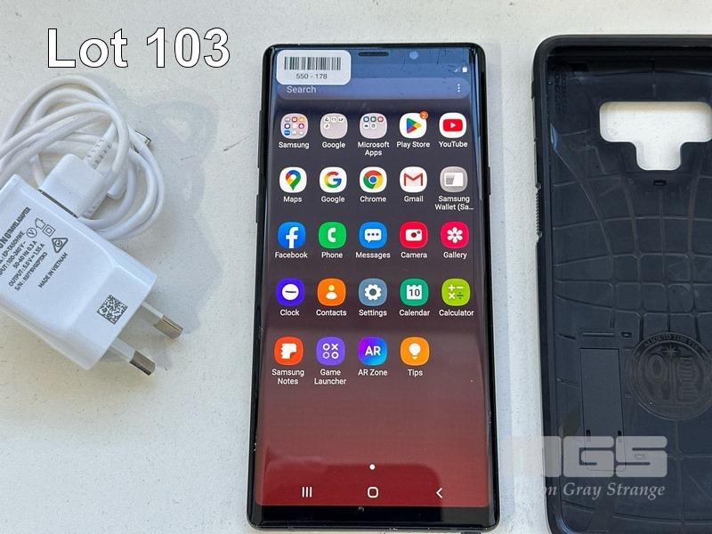 SAMSUNG GALAXY NOTE9 SMARTPHONE, 128GB, BLACK, MODEL SM-N960F WITH CASE, USB-C CABLE & CHARGER (NOTE: MINOR SCRATCHES ON SCREEN) S/N:R58KB6D04AK