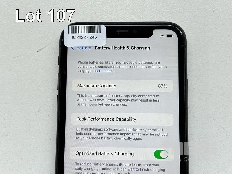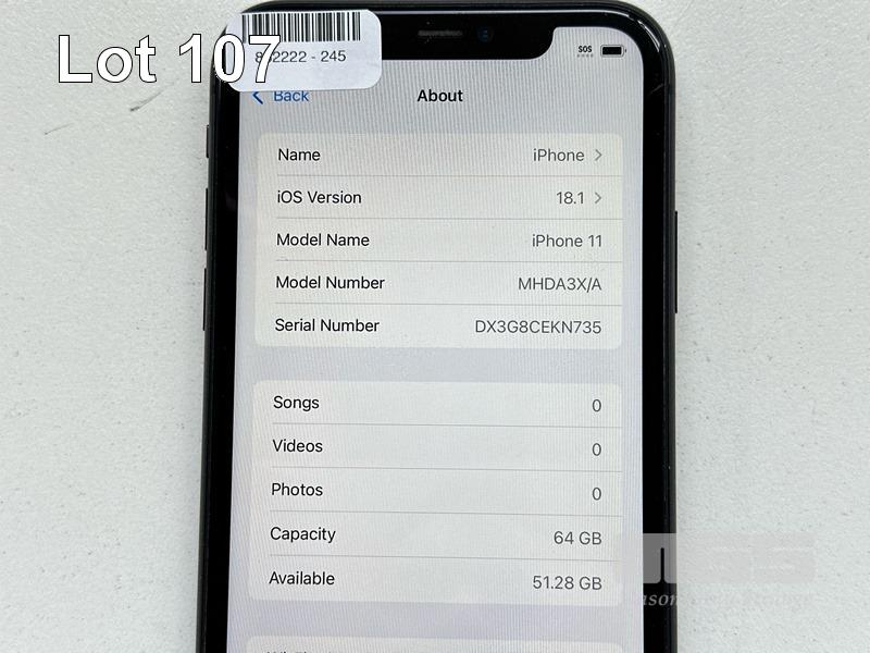 APPLE iPHONE 11, 64GB, MODEL MHDA3X/A, A2221, BLACK, BATTERY HEALTH 87% (NO CABLE, NO CHARGER) (NOTE: SCRATCHES ON SCREEN) S/N:DX3G8CEKN735