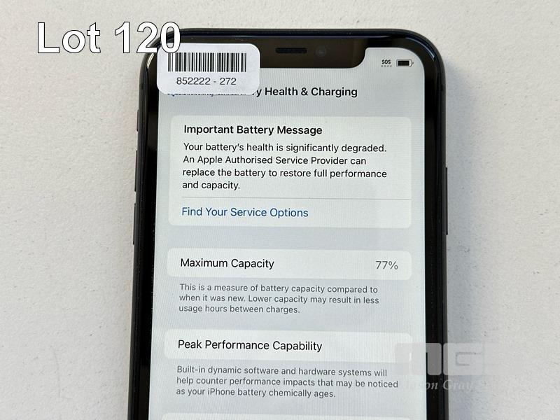 APPLE iPHONE 11, 64GB, MODEL MHDA3X/A, A2221, BLACK, BATTERY HEALTH 77% (NO CABLE, NO CHARGER) (NOTE: BATTERY SERVICE MESSAGE) S/N:DX3H3TQHN735