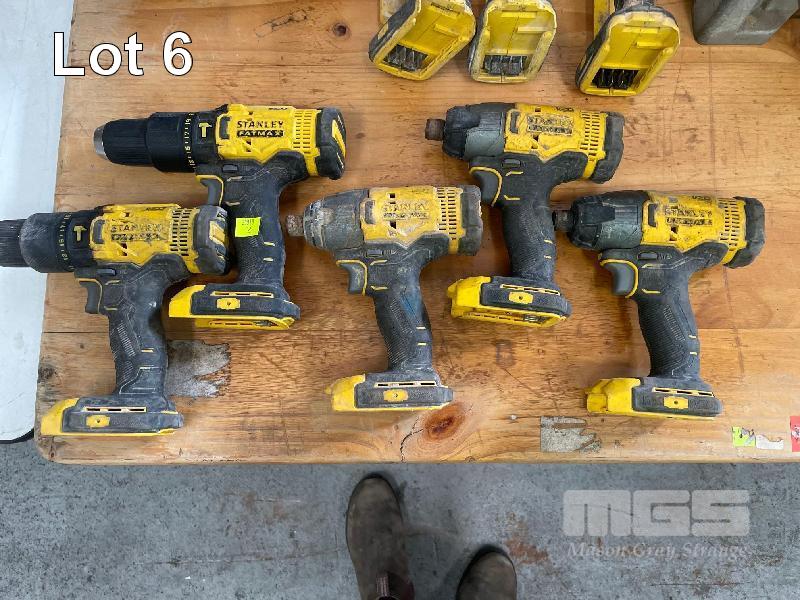 STANLEY POWER TOOLS INCLUDING, CIRCULAR SAW, 165mm, 3 x ANGLE GRINDERS, 2 x DRILLS, 3 x IMPACT DRIVERS, 18V NO BATTERIES OR CHARGERS