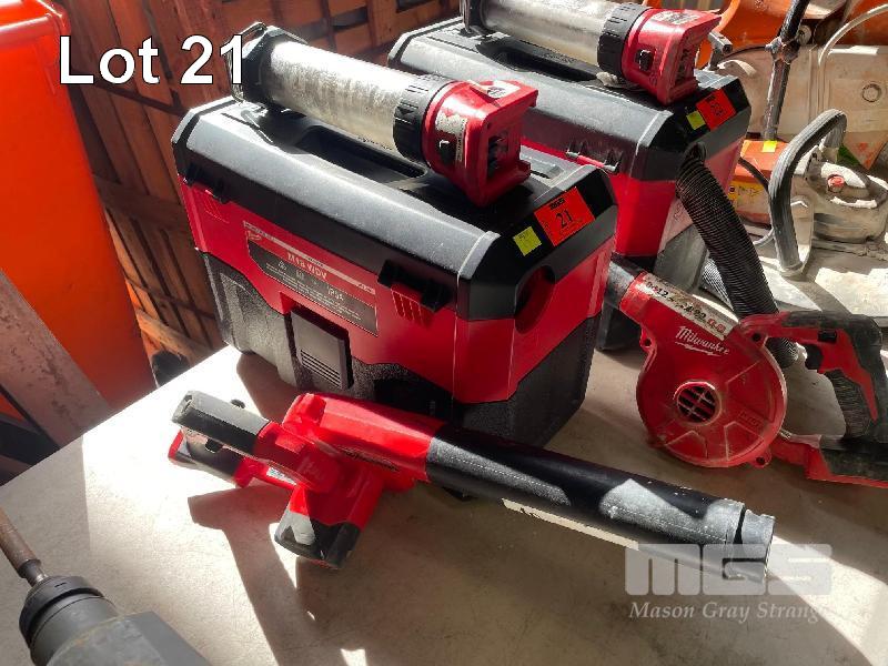 ASSORTED MILWAUKEE ITEMS INCLUDING BLOWER, MOD: M18BBL 18V, VACUUM, MOD: M18WDV, 18V & WORK LIGHT, MOD: M18LL NO BATTERIES OR CHARGERS