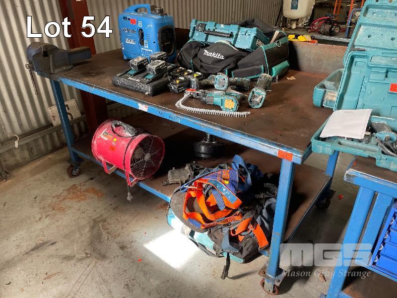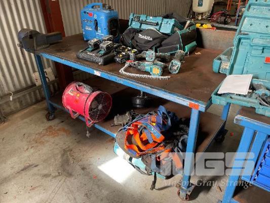MOBILE WORKBENCH, 4mm STEEL PLATE TOP, 2 TIER, 2000 x 1000mm WITH ECLIPSE VICE MOUNTED