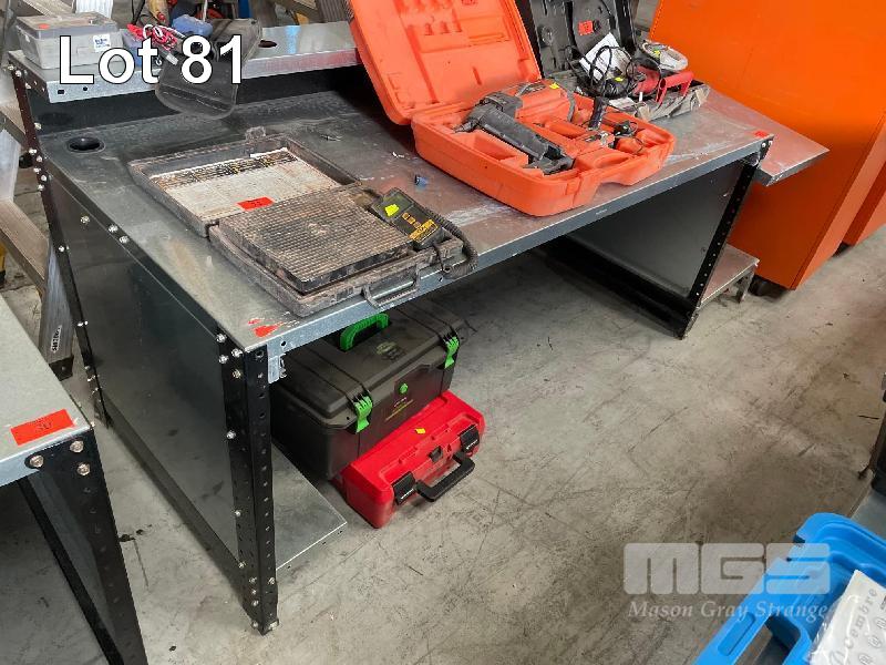 STEEL BENCH, SHARMAN 1710 x 760mm, GALV TOP, WITH TECH SHELF